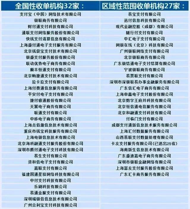 支付牌照就不用說了,在名單內部的都是有支付牌照的。