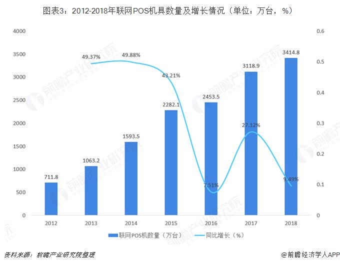 受理市場(chǎng)環(huán)境不斷完善。截至2018年末,我國(guó)聯(lián)網(wǎng)POS機(jī)具共有3414.82萬臺(tái),較上年增長(zhǎng)295.96萬臺(tái),全國(guó)每萬人對(duì)應(yīng)的POS機(jī)具數(shù)量245.66臺(tái),同比增長(zhǎng)8.91%,全國(guó)聯(lián)網(wǎng)POS機(jī)數(shù)和聯(lián)網(wǎng)商戶數(shù)的持續(xù)增長(zhǎng)為智能POS收單發(fā)展提供了廣闊空間,智能POS對(duì)于第三方支付收單市場(chǎng)具有重要的業(yè)務(wù)升級(jí)作用。
