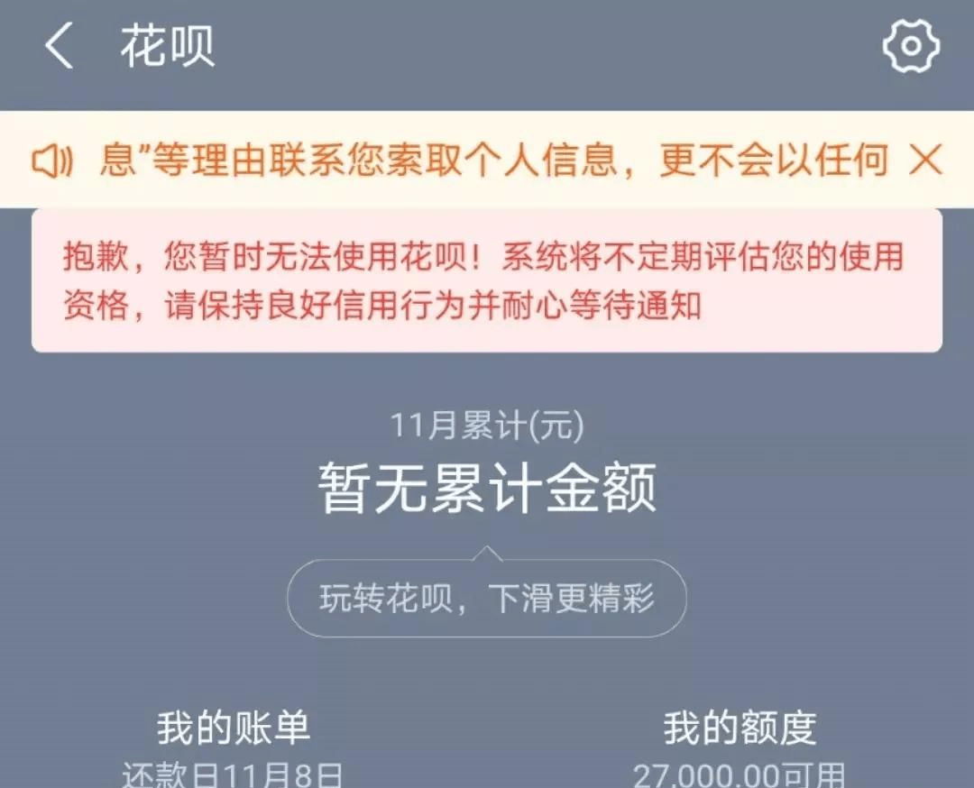 總之,有些伙伴的情況是花唄不能用,簡單來說,比如你在借唄借了大量資金,或者同時還在其他平臺存在大量的借款,系統就會對你的還款能力產生懷疑,為避免風險才把額度降低,嚴重的還會關閉。