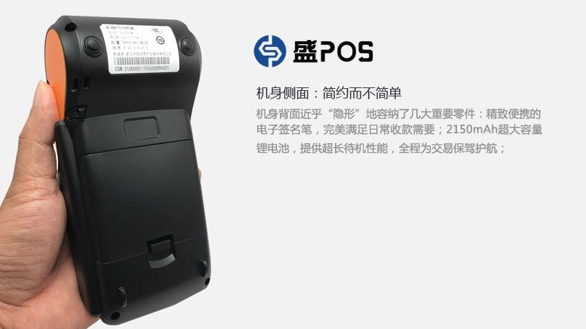 機(jī)身背面近乎“隱形”地容納了幾大重要零件:精致便攜的電子簽名筆,完美滿足日常收款需要;2150mAh超大容量鋰電池,提供超長(zhǎng)待機(jī)性能,全程為交易保駕護(hù)航;雙卡槽待機(jī),提供強(qiáng)大的GPRS無線通訊,讓用戶暢享安全、可靠、便捷的支付體驗(yàn)。