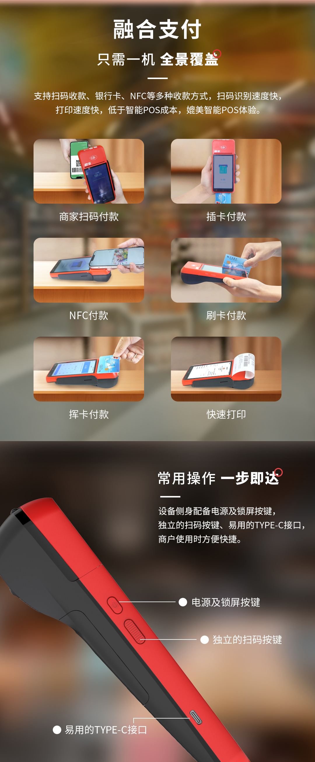 匯付天下鴻POS機是中國知名第三方支付公司匯付天下研發的一款人臉識別技術便捷小微商戶,個人收款的智能一清機,主要功能公共事業繳費、轉賬功能、收款功能(刷卡、云閃付、支付寶微信、銀聯二維碼、...